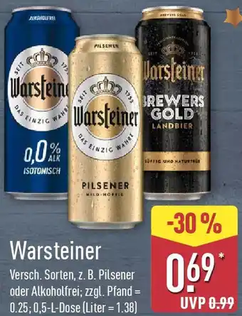 Diese Woche ist Warsteiner bei Aldi Nord reduziert erhältlich. Hier finden Sie alle Informationen zu Preisen, Aktionsdetails und Laufzeit. Prüfen Sie weitere Warsteiner Aktionen, um sicherzugehen, dass Sie den besten Preis erhalten. Die Warsteiner Aktion gilt in Kalenderwoche 01. Nach Ablauf zeigen wir Ihnen vergleichbare Alternativen. Abonnieren Sie die Kategorie, um beim nächsten Mal direkt informiert zu sein, wenn Warsteiner wieder reduziert ist.Häufig gestellte Fragen über Warsteiner
