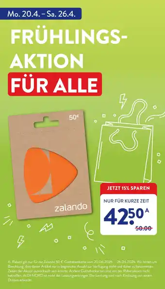Jetzt im Angebot bei Aldi Nord: Zalando 50 € guthabenkarte ✅ Aktion gültig vom 20-04 bis 25-04.