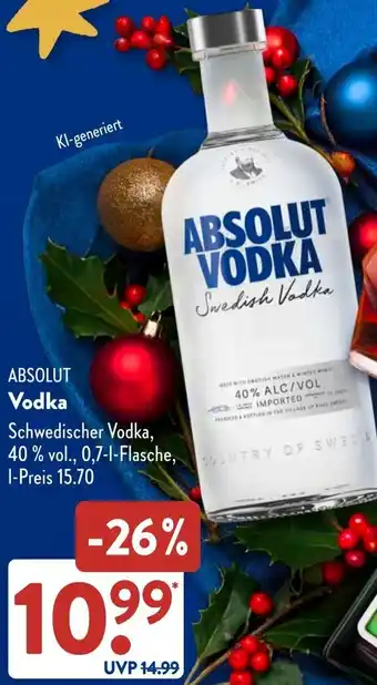 Jetzt im Angebot bei Aldi Süd: ABSOLUT Vodka ✅ Aktion gültig vom 22-12 bis 28-12.