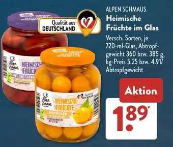 ALPEN SCHMAUS Heimische Früchte im Glas Angebote und Aktionen bei Aldi Süd