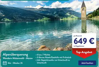 Jetzt im Angebot bei Aldi Süd: Alpenüberquerung Wandern Mittenwald - Meran ✅ Aktion gültig vom 12-01 bis 18-01.