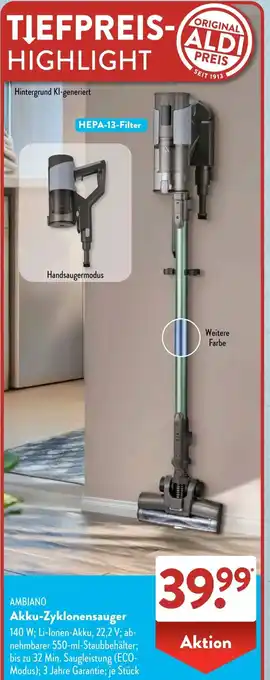 AMBIANO Akku-Zyklonensauger-Angebot bei Aldi Süd