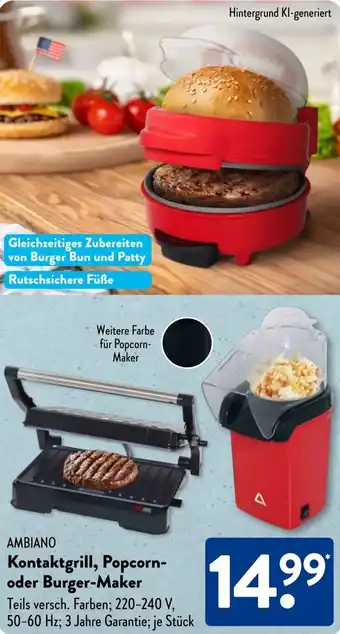 AMBIANO Kontaktgrill, Popcorn- oder Burger-Maker Aktion bei Aldi Süd