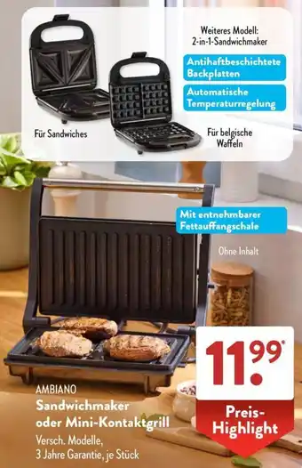AMBIANO Sandwichmaker oder Mini-Kontaktgrill Aktion bei Aldi Süd