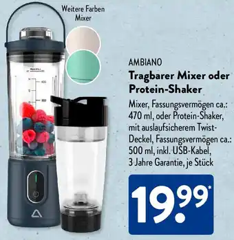 Jetzt im Angebot bei Aldi Süd: AMBIANO Tragbarer Mixer oder Protein-Shaker ✅ Aktion gültig vom 5-01 bis 11-01.