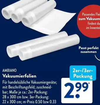 Jetzt im Angebot bei Aldi Süd: AMBIANO Vakuumierfolien ✅ Aktion gültig vom 29-12 bis 4-01.