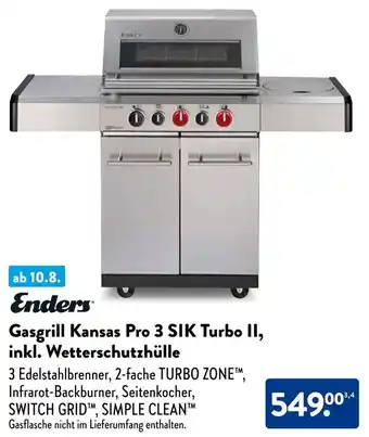 Enders Gasgrill Kansas Pro 3 SIK Turbo II, inkl. Wetterschutzhülle-Angebot bei Aldi Süd