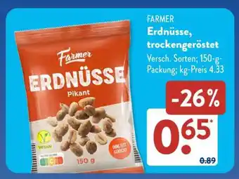 Jetzt im Angebot bei Aldi Süd: Farmer Erdnüsse, trockengeröstet ✅ Aktion gültig vom 23-02 bis 28-02.