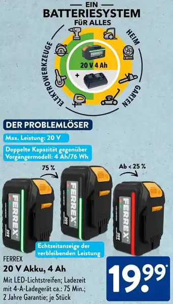 Jetzt im Angebot bei Aldi Süd: FERREX 20 V Akku, 4 Ah ✅ Aktion gültig vom 20-04 bis 26-04.