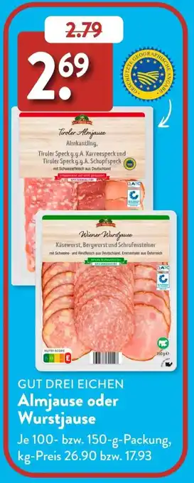 Jetzt im Angebot bei Aldi Süd: GUT DREI EICHEN Almjause oder Wurstjause ✅ Aktion gültig vom 2-02 bis 8-02.