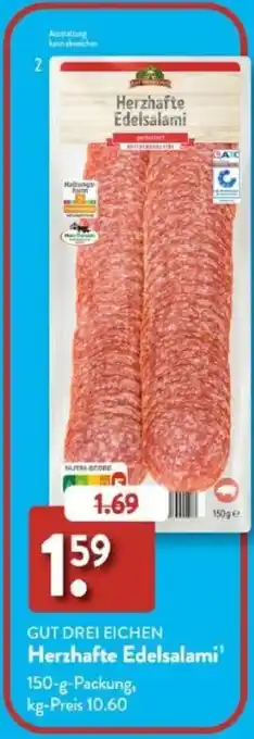 Jetzt im Angebot bei Aldi Süd: GUT DREI EICHEN Herzhafte Edelsalami ✅ Aktion gültig vom 29-12 bis 3-01.