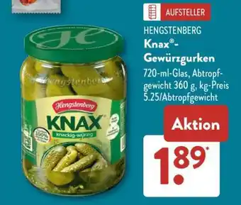 Jetzt im Angebot bei Aldi Süd: Hengstenberg Knax Gewürzgurken ✅ Aktion gültig vom 5-01 bis 10-01.