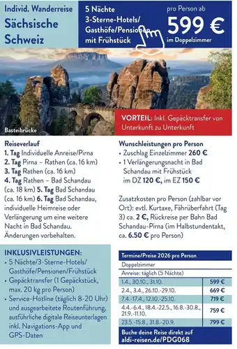 Jetzt im Angebot bei Aldi Süd: Individ. Wanderreise Sächsische Schweiz ✅ Aktion gültig vom 1-03 bis 31-03.