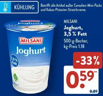 MILSANI Joghurt, 3,5% Fett-Rabatt bei Aldi Süd