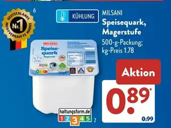 MILSANI Speisequark, Magerstufe Angebote und Aktionen bei Aldi Süd