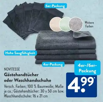 NOVITESSE Gästehandtücher oder Waschhandschuhe-Rabatt bei Aldi Süd