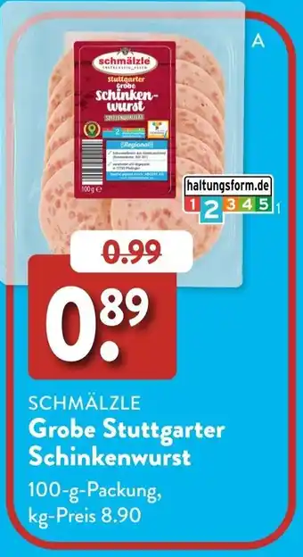 SCHMÄLZLE Grobe Stuttgarter Schinkenwurst Aktion bei Aldi Süd