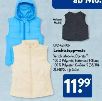 UP2FASHION Leichtsteppweste-Rabatt bei Aldi Süd