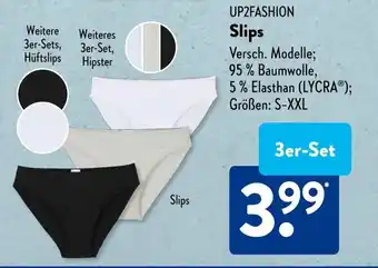 Den Preis von dem UP2FASHION Slips finden Sie auch oben auf der Website, zusammen mit dem Datum, ab wann das Angebot erhältlich ist. Sie können die Preise auch im aktuellen Aldi Süd Prospekt nachhalten oder auf der Aldi Süd Website nachschauen. Durch die Angebote können Sie sicher sein, die Aldi Süd Produkte zum absoluten Bestpreis zu ergattern.