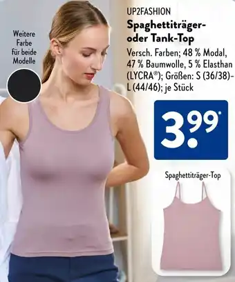 UP2FASHION Spaghettiträger- oder Tank-Top Angebote und Online Aktionen direkt aus dem aktuellen Aldi Süd Angebot