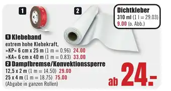 2 Dampfbremse/Konvektionssperre 12,5 x 2 m (1 m = 14.50) 29.00.25 x 4 m (1 m 18.75) 75.00