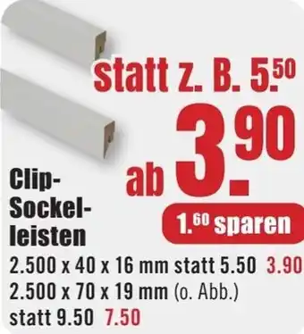Jetzt im Angebot bei B1 Discount Baumarkt: Clip Sockelleisten ✅ Aktion gültig vom 3-01 bis 10-01.