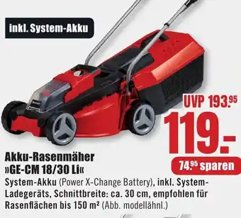 Einhell Akku-Rasenmäher GE-CM 18/30 Li Aktion bei B1 Discount Baumarkt