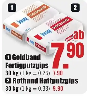 30 kg (1 kg = 0.26) 7.90 2 Rotband Haftputzgips 30 kg (1 kg = 0.33) 9.90