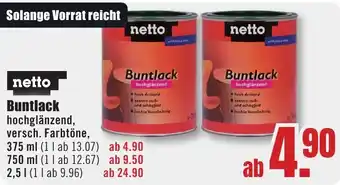 Jetzt im Angebot bei B1 Discount Baumarkt: Netto buntlack ✅ Aktion gültig vom 21-02 bis 27-02.