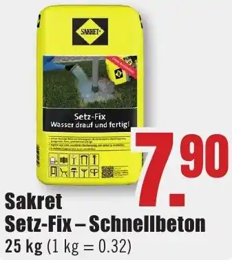 Jetzt im Angebot bei B1 Discount Baumarkt: Sakret Setz-Fix Schnellbeton ✅ Aktion gültig vom 21-02 bis 27-02.