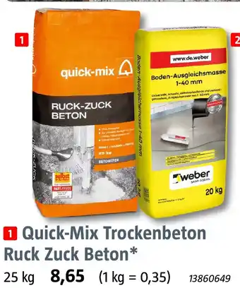 Jetzt im Angebot bei Bauhaus: 1 Quick-Mix Trockenbeton Ruck Zuck Beton* ✅ Aktion gültig vom 2-01 bis 18-01.