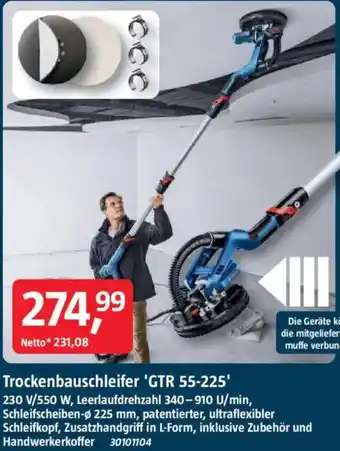 Jetzt im Angebot bei Bauhaus: Bosch Trockenbauschleifer 'GTR 55-225' ✅ Aktion gültig vom 11-04 bis 25-04.