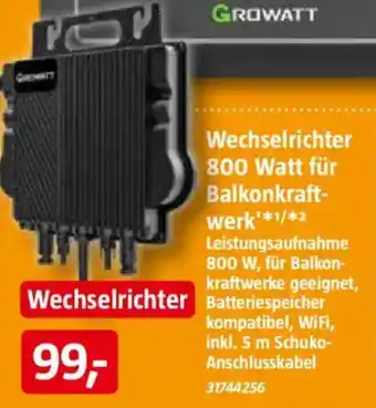 Jetzt im Angebot bei Bauhaus: GROWATT Wechselrichter 800 Watt für Balkonkraftwerk' ✅ Aktion gültig vom 28-02 bis 28-03.