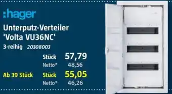 Jetzt im Angebot bei Bauhaus: hager Unterputz-Verteiler 'Volta VU36NC' ✅ Aktion gültig vom 11-04 bis 25-04.