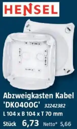 Jetzt im Angebot bei Bauhaus: HENSEL Abzweigkasten Kabel DK0400G ✅ Aktion gültig vom 11-04 bis 25-04.