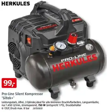 Jetzt im Angebot bei Bauhaus: HERKULES Pro-Line Silent Kompressor 'Siltek+' ✅ Aktion gültig vom 28-02 bis 28-03.