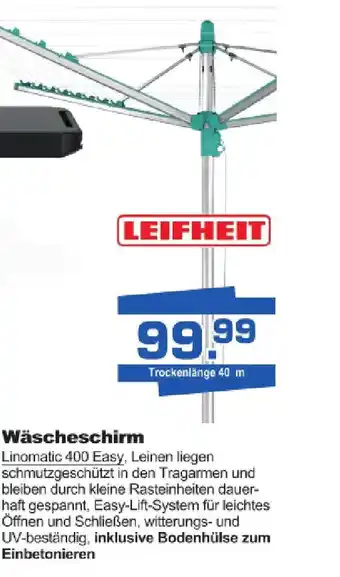 Jetzt im Angebot bei Bauzentrum Borgers: LEIFHEIT Wäscheschirm ✅ Aktion gültig vom 9-04 bis 18-04.