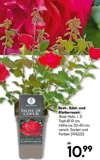 Beet-, Edel- und Kletterrosen ist jetzt im Angebot bei BayWa Bau & Garten, gültig vom 20-04-2026 bis 26-04-2026. Besuchen Sie die Website von BayWa Bau & Garten oder kaufen Sie Beet-, Edel- und Kletterrosen direkt im Geschäft. Auf Prospektangebote.de finden Sie immer die besten aktuellen Aktionen. Vergleichen Sie Beet-, Edel- und Kletterrosen mit anderen Angeboten und prüfen Sie, ob sich ein Kauf jetzt lohnt. Behalten Sie kommende Aktionen im Blick, denn manche Produkte sind nur nächste Woche oder nur vor Ort verfügbar.Häufig gestellte Fragen über Beet-, Edel- und Kletterrosen