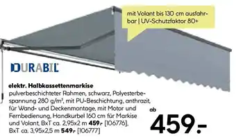 Jetzt im Angebot bei BayWa Bau & Garten: DURABIL elektr. Halbkassettenmarkise ✅ Aktion gültig vom 20-04 bis 26-04.
