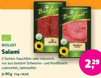 Jetzt im Angebot bei Biomarkt: BIOLUST Salami ✅ Aktion gültig vom 2-01 bis 13-01.