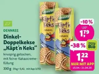 DENNREE Dinkel- Doppelkekse ,,Käpt'n Keks" Angebote und Online Aktionen direkt aus dem aktuellen Biomarkt Angebot