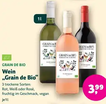Jetzt im Angebot bei Biomarkt: GRAIN DE BIO Wein ,,Grain de Bio" ✅ Aktion gültig vom 14-01 bis 27-01.