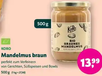Jetzt im Angebot bei Biomarkt: KORO Mandelmus braun ✅ Aktion gültig vom 2-01 bis 13-01.