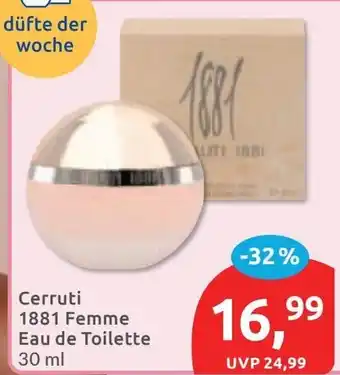 Jetzt im Angebot bei Budni: Cerruti 1881 Femme Eau de Toilette ✅ Aktion gültig vom 23-02 bis 28-02.