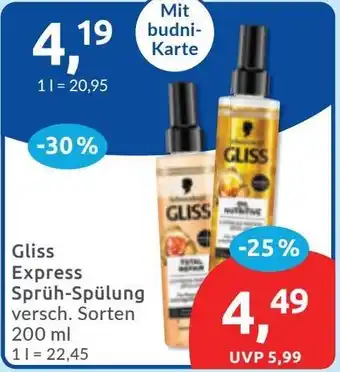 Gliss Express Sprüh-Spülung-Angebot bei Budni