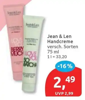 Das Angebot ist in verschiedenen Geschäften erhältlich. Schauen Sie sich alle Produkte an, um das günstigste Jean & Len Handcreme zu ergattern. Wenn Sie gerne nachschauen möchten, ob der Artikel woanders noch günstiger ist, werfen Sie einen Blick auf die Kategorie 'Drogerie und Parfümerie'. Möglicherweise sind diese Angebote auch interessant für Sie: Jean & Len Shampoo, Jean & len bodymilk & Jean & Len Body milk.