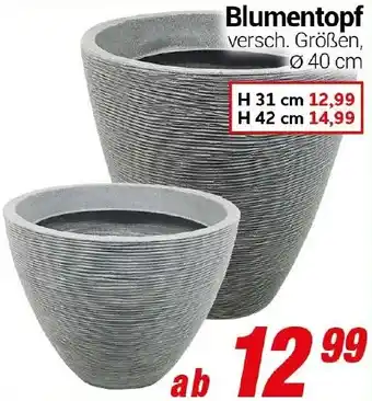 Diese Woche ist Blumentopf bei CENTERSHOP reduziert erhältlich. Hier finden Sie alle Informationen zu Preisen, Aktionsdetails und Laufzeit. Prüfen Sie weitere Blumentopf Aktionen, um sicherzugehen, dass Sie den besten Preis erhalten. Die Blumentopf Aktion gilt in Kalenderwoche 09. Nach Ablauf zeigen wir Ihnen vergleichbare Alternativen. Abonnieren Sie die Kategorie, um beim nächsten Mal direkt informiert zu sein, wenn Blumentopf wieder reduziert ist.Häufig gestellte Fragen über Blumentopf