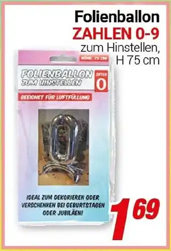 Jetzt im Angebot bei CENTERSHOP: Folienballon ZAHLEN 0-9 ✅ Aktion gültig vom 2-03 bis 7-03.