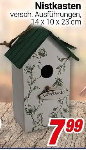 Den Preis von dem Nistkasten finden Sie auch oben auf der Website, zusammen mit dem Datum, ab wann das Angebot erhältlich ist. Sie können die Preise auch im aktuellen CENTERSHOP Prospekt nachhalten oder auf der CENTERSHOP Website nachschauen. Durch die Angebote können Sie sicher sein, die CENTERSHOP Produkte zum absoluten Bestpreis zu ergattern.