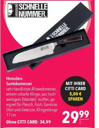 HENSSLER SCHNELLE NUMMER. Hensslers Santokumesser-Angebot bei CITTI Markt